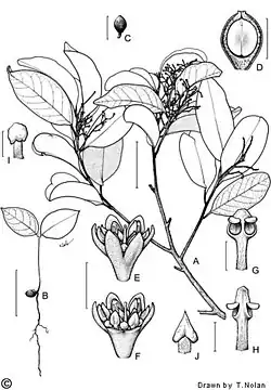Cryptocarya macdonaldii, commonly known as McDonald's laurel, McDonald's cryptocarya[2] or Cooloola laurel,[3] is a species of flowering plant in the family Lauraceae and is endemic to Central Queensland. It is a tree with elliptic to egg-shaped to oblong leaves, cream-coloured, unpleasantly perfumed flowers, and elliptical black drupes.