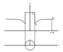 Assuming that the diffusion profile does not change over time but is only shifted with the growing radius it can be said that , which leads to being constant. This constant can be indicated with the letter and integrating will result in the following equation: