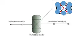 Copper based type Y zeolites were first described as a means of hydrocracking in a patent filed in 1963, and were soon implemented in industrial hydrocracking processes.[3] They eventually began to find use in other industries as the usage of zeolites increased as a whole, such as removal of carbon monoxide from gas.[4] In 1972, a patent was filed describing the production of Cu-Y zeolites from sodium-based zeolites, helping to further spread its use in the industry.[5] The first documented use of Cu-Y zeolites for desulfurization was in 1977, in which a variety of zeolites including the Cu-Y variant were used to remove hydrogen sulfide from gases.[6] From then on, various methods were developed utilizing Cu-Y zeolites in desulfurization of hydrocarbons, reducing their environmental impact when used as fuel.