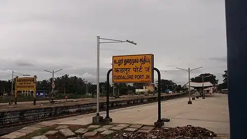 Cuddalore Junction (station code: CUPJ) is an NSG–5 category Indian railway station in Tiruchirappalli railway division of Southern Railway zone.[1] It is a junction station serving the City of Cuddalore. The station is a part of the Trichy division of the Southern Railway zone and its official code is CUPJ. Its old name is Cuddalore Junction and the station code then was COT.