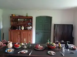 However, the attraction to French food was not the mainstream of American society. The disdain for "fancy French cooking" in American society was significant enough to influence the Presidential campaign in the 1840 election in which the Whig candidate William Henry Harrison was touted as living on "raw beef and salt" while a simultaneous smear campaign was launched against Martin Van Buren who was known to have a taste for French cuisine.[4] The French custom of a la carte meal service was viewed as undemocratic in comparison to sharing meals between guests. When the New York Hotel opened in 1844, the hotel's decision to serve meals a la carte was answered by criticism by local newspapers. Offering people different food at different prices, the papers argued, was an attack on the foundations of the Republic. Nat P. Willis of the Weekly Mirror wrote, "The public table is the tangible republic – the only thing palpable and agreeable that we have to show, in common life, as republican."[5]