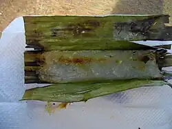 - Apigigi (coconut mixture roasted in a banana leaf)[21]