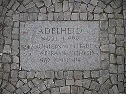 In 2007, a FrauenOrt in Magdeburg was created and dedicated to Adelaide together with Editha and Theophanu.[61]