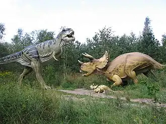 In 1990, the Smithsonian Institution's National Museum of Natural History in Washington, D.C., featured an exhibition of dinosaur sculpture by Jim Gary that drew more visitors than any of its previous exhibits.[35] His Twentieth Century Dinosaurs, popular since the 1960s, began being featured in textbooks, encyclopedias, and videos as well as later, by the likes of National Geographic, in their publications for children in 1975,[36] and they featured Gary as the cover story for National Geographic World in September 1978.[37]