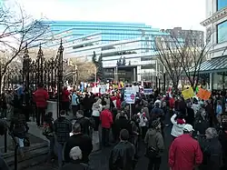 Montreal's theatre district ("Quartier des Spectacles") is the scene of performances that are mainly French-language, although the city also boasts a lively anglophone theatre scene, such as the Centaur Theatre.[157] Large French theatres in the city include Théâtre Saint-Denis and Théâtre du Nouveau Monde.[158]