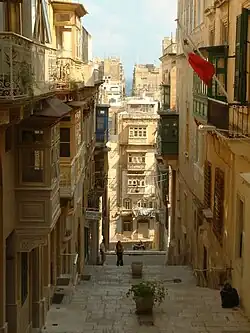 Traces of Siculo-Norman architecture can still be found in Malta's ancient capital of Mdina and in Vittoriosa, most notably in the Palaces of the Santa Sofia, Gatto Murina, Inguanez and Falzon families.[33]
