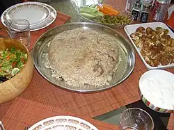 Palestine's history of rule by many different empires is reflected in Palestinian cuisine, which has benefited from various cultural contributions and exchanges. Generally speaking, modern Palestinian dishes have been influenced by the rule of three major Islamic groups: the Arabs, the Persian-influenced Arabs, and the Turks.[35] The original Bedouin Arabs in Syria and Palestine had simple culinary traditions primarily based on the use of rice, lamb and yogurt, as well as dates.[36]
