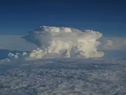A cumulonimbus capillatus is a cumulonimbus cloud with dense cirrus clouds above it, making the cloud top appear to contain hair-like structures. The name comes from the Latin word capillatus, meaning "with hair".[1]