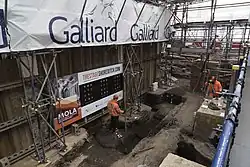 In 2012, archaeologists from MOLA (Museum of London Archaeology) announced that they had discovered the remains of the theatre during trial excavations.[16][17] In 2013 plans were submitted to develop the site with a 40-storey tower of 400 apartments, plus a Shakespeare museum, 250-seat outdoor auditorium and park, with the archaeological remains visible in a glass enclosure.[18]