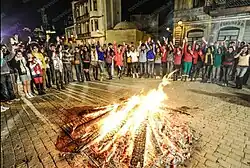 At night, everyone should jump over a bonfire 7 times while telling a special phrase. After holiday people visit adults and elder people to congratulate their holiday and the elderly will often give gifts to the younger. And people who quarreled got reconciled on that day.[7][8][9]