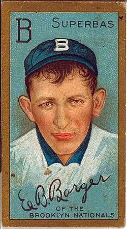 Cy Barger, in a baseball card issued by American Tobacco Company in 1911. | |