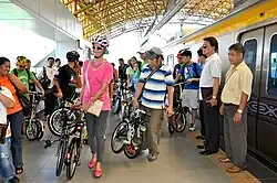 In 2020, bicycle racks were installed at stations of Lines 1, 2, and 3 of the PNR Metro Commuter Line. The Philippine National Railways allows folding bicycles on its trains, charging the bicycle a fare equivalent to one person's fare.[59] The Pasig River Ferry Service, operated by the MMDA, allows both folded and full-sized bicycles to be carried onboard, free of charge.[60]