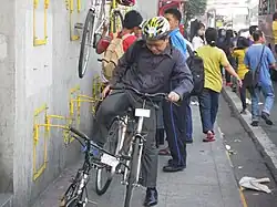 Several pedestrian footbridges and underpasses, particularly in Quezon City, have also been outfitted with bicycle ramps to allow cyclists to bring their bicycles on them.[61]
