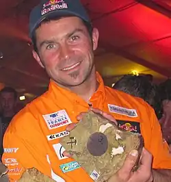 Cyril Despres (born 24 January 1974)[1] is a French rally racer and resident of Andorra.[2] He won the Dakar Rally five times, in 2005, 2007, 2010, 2012 and 2013,[3] riding a KTM motorcycle. He also won the Red Bull Romaniacs, an enduro event, three times, in 2004, 2005 and 2007, and the Erzberg Rodeo in 2002 and 2003.[4] In the 2018 season he is one of the official drivers of the Team Peugeot Total.[5]