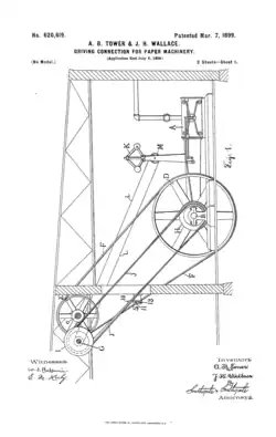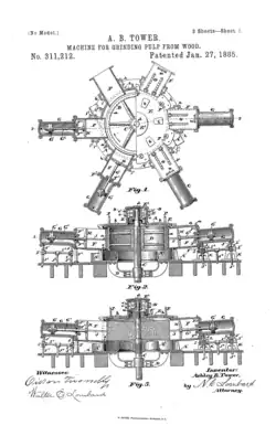 - ^ US 311212, Tower, Ashley B., "Machine for grinding pulp from wood", published 1885-01-27