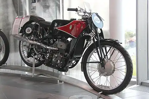 The DKW SS 350 was a racing motorcycle.[1][2] 1935 saw the introduction of Dampf-Kraft-Wagen's first "over the counter" racer with the announcement of the SS250 at that year's Berlin Show. The model was quickly followed by a 350 cc version, the SS350, which drew on the works team's experience.