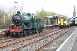 After being moved several times following display, 461 was presented by CIÉ to the RPSI in 1977.[2] An extensive overhaul followed at Whitehead and the locomotive returned to traffic in late 1990. The locomotive completed an overhaul in 2011 at the RPSI's Whitehead base, and was operation in the Dublin area until 2018. She has also been used on some northern operations including one to Portrush and also some to Bangor. The locomotive is currently in store in Whitehead since late 2018, awaiting overhaul.
