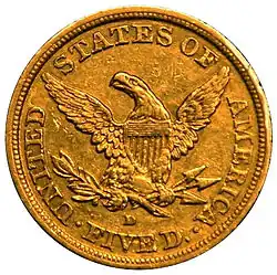 34°31′48″N 83°59′14″W / 34.5299°N 83.9871°WThe Dahlonega Mint was a former branch of the United States Mint built during the Georgia Gold Rush to help the miners get their gold assayed and minted, without having to travel to the Philadelphia Mint.[1]: 80–81, 105 It was located at (34°31.8′N 83°59.2′W ) in Dahlonega, Lumpkin County, Georgia. Coins produced at the Dahlonega Mint bear the "D" mint mark. That mint mark is used today by the Denver Mint, which opened in 1906, over four decades after the Dahlonega Mint closed. All coins from the Dahlonega Mint are gold, in the $1, $2.50, $3, and $5 denominations, and bear dates in the range 1838–1861.