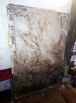From the Premonstratensian point of view, Dale Abbey was founded in 1204 from Newsham Abbey in Lincolnshire.[2] However, the chronicle of the abbey, which dates from the mid-13th century,[3] gives a long and detailed prehistory. The author of the chronicle was Thomas de Muskham: the initial letters of the various sections of the foundation legend make up the name T. H. O. M. A. S. D. E. M. V. S. C. A.[4] Thomas did not trust in the detective work of later generations, but tells the reader explicitly that his name is in the capital letters of the text.[5]