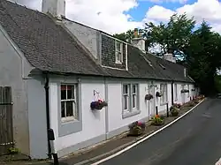 In 1881 some two hundred people lived in the village, the mill being at its heart, with a Sunday school, smithy, joiner's shop and Dalgarven House. Most of the women were weavers, dressmakers, farm or domestic servants. The men were stonemasons, joiners, farm labourers, platelayers, railway surfacemen, etc. Monkcastle House is at one end of the village and Smithstone House at the other. The coming of the new road resulted in the demolition of most of the village apart from the smithy and a cottage row.