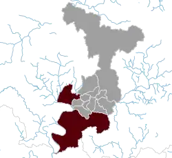 The constituency encompass the entirety of Dalseong County which includes the towns of Hwawon-eup, Nongong-eup, Dasa-eup, Yuga-eup, Okpo-eup, Hyeonpung-eup, and the townships of Gachang-myeon, Habin-myeon, and Guji-myeon. It borders the constituencies of Dalseo B, Jung–Nam, and Suseong B to the north, Goryeong–Seongju–Chilgok to the west, Miryang–Uiryeong–Haman–Changnyeong and Yeongcheon–Cheondo to the south, and Gyeongsan to the east.[20]
