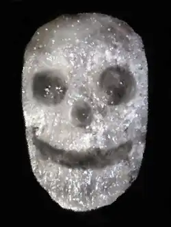 In June 2007, Beyond Belief, an exhibition of Hirst's new work, opened at the White Cube gallery in London. The centre-piece, a Memento Mori titled For the Love of God, was a human skull recreated in platinum and adorned with 8,601 diamonds weighing a total of 1,106.18 carats.[65] Approximately £15,000,000 worth of diamonds were used. It was modelled on an 18th-century skull, but the only surviving human part of the original is the teeth. The asking price for For the Love of God was £50,000,000 ($100 million or 75 million euros). It didn't sell outright,[66] and on 30 August 2008 was sold to a consortium that included Hirst himself and his gallery White Cube.[66]