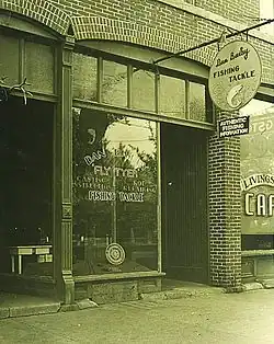 The original fly shop was established in the old Albermarle Hotel at 103 W Park Street along with a small shooting gallery. The Baileys lived in a back room and the rent was $25 a month.[2] Because there was limited opportunity for local fly business, Dan Bailey's became primarily a mail order fly shop and outfitter for visiting anglers. Dan Bailey produced his first mail order catalog in 1941—standard dry flies were $2.50 per dozen.[1] In 1981, the year before Dan's passing, Dan Bailey's Fly Shop was the largest manufacturer of artificial flies in the United States producing over 750,000 flies annually for wholesale and retail customers. The mail order business had over 50,000 subscribers.[1]