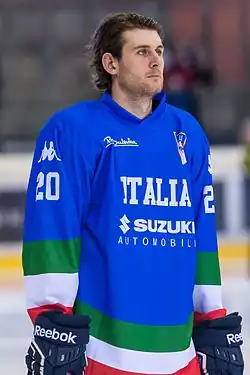 Since 2015 he is also member of the Italy men's national ice hockey team.[1]