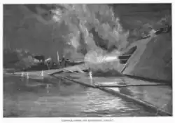 George served on board U.S. Picket Boat No. 1, in action near Plymouth, North Carolina, 27 October 1864, against the Confederate ram, Albemarle, which had resisted repeated attacks by our steamers and had kept a large force of vessels employed in watching her. The picket boat, equipped with a spar torpedo, succeeded in passing the enemy pickets within 20 yards without being discovered and then made for the Albemarle under a full head of steam. Immediately taken under fire by the ram, the small boat plunged on, jumped the log boom which encircled the target and exploded its torpedo under the port bow of the ram. The picket boat was destroyed by enemy fire and almost the entire crew taken prisoner or lost.[3]
