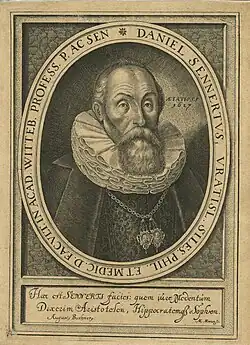 Daniel Sennert (25 November 1572 – 21 July 1637) was a German physician and a prolific academic writer, especially in the field of alchemy or chemistry. He held the position of professor of medicine at the University of Wittenberg for many years.