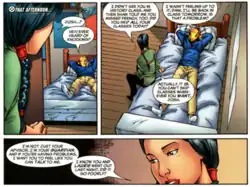 - ^ Kyle, Craig, Yost, Chris (w), Brooks, Mark (p), Leisten, Jay, Mendoza, Jaime (i), Reber, Brian, McCaig, Dave (col), Sharpe, Dave (let), Marts, Mike (ed). "Childhood's End: Part 3 of 4" New X-Men, vol. 2, no. 22 (March 2006). New York, NY: Marvel Comics, ISSN 1555-1059.