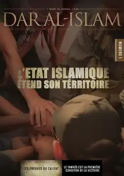 Dar al-Islam (Arabic: دار الإسلام, romanized: Dār al-ʾIslām, lit. 'House of Islam') is the title of a French-language online magazine produced by the Islamic State (IS) between 2014 and 2016. It included articles praising terrorist attacks in France,[1] such as the 2016 Nice truck attack and the January 2015 Île-de-France attacks.[2][3]