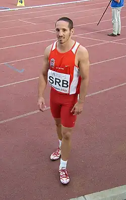 During the outdoor season he competed at three national championships. At the Serbian U23 championships he finished first in the 400 m and 4 × 100 m, and second in the 100 m event.[29] At the Serbian championships he won the gold medal in the 200 m, the silver in the 100 m,[53] and the bronze in the decathlon event.[54]