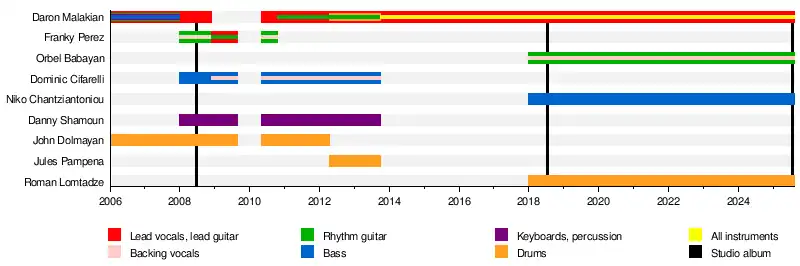 | Past members | Dominic Cifarelli John Dolmayan Jules Pampena Franky Perez Danny Shamoun |