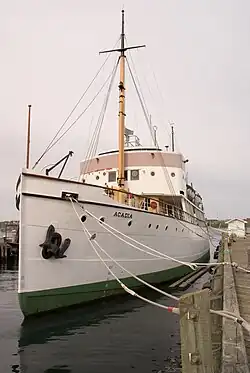 The final and most commonly known name, the Dartmouth Marine Slips, eventually evolved. They offered a complete range of repair services for vessels up to 3,000 tons. The Slips had a reputation for being a "quick turn-around" repair site. An additional 800 feet (240 m) of berthing space was created to accommodate vessels needing alongside repairs.[3] The Dartmouth Marine Slips provided a variety of services in its latter years: emergency and scheduled repair services for international and domestic fleets, extended repair services to offshore supply vessels servicing drill rigs off Canada's east coast, and also offered float repairs anywhere in Atlantic Canada by mobile ship crew using work boats and work barges. Regular customers over the years included large fishing trawlers, Canadian Coast Guard vessels, the Halifax-Dartmouth ferries and historic vessels such as CSS Acadia.