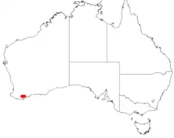 This darwinia is currently only known from eight populations in the lower part of the Stirling Range in the Esperance Plains and Jarrah Forest biogeographic regions, where it grows in open mallee over scrub.[2][3][5]