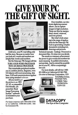- ^ Rosch, Winn L. (June 11, 1985). "Datacopy 700 Gives PCs a Photographic Memory". PC Magazine. 4 (12). Ziff-Davis: 60 – via Google Books.