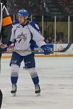 In the 2017–18 season, he was an alternate captain on Sudbury, and had an injury-plagued season and fell to 29 points in 46 games.[27][28]