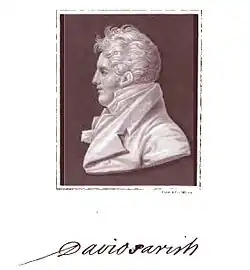 ![]() Portrait and signature of David Parish. Portrait is from an engraved miniature painted on ivory in 1810.[1] | |