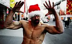 David Zancai (born May 7, 1968[2][3][4]) is a former street entertainer from Toronto, Ontario, Canada. Zancai is known for his character Zanta: a modified Santa Claus who travels the streets of downtown Toronto doing pushups and shouting "yes yes yes" and "Merry Christmess".[4] His costume consists of nothing but shorts, boots, and a red-and-white Santa hat, even during Toronto's winters. He claims to perform this routine every day of the year except Christmas Day, and estimates he does 2,000 to 3,000 pushups per day.[3] In 2000, Zancai fell 25 feet onto a staircase while working as a painter. He entered treatment for schizophrenia at St. Joseph's hospital, having been diagnosed with schizophrenia and bipolar disorder earlier in 2003.[5] Zancai has received mixed responses to his Zanta character, and has been banned from several public areas around Toronto, including the Toronto Transit Commission.[6]