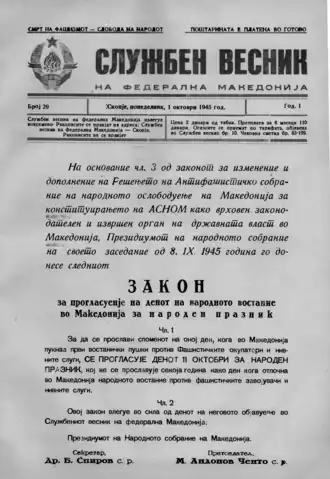 ![]() Proclamation of 11 October as a national holiday in Democratic Federal Macedonia | |