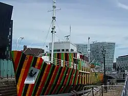 - “Dazzle Ship London”, by Tobias Rehberger, on HMS President on the River Thames.[4]