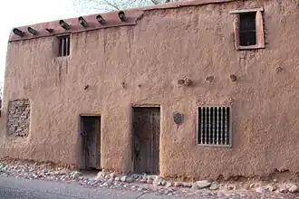 The De Vargas Street House, often referred to as the Oldest House, is a historic building in Santa Fe, New Mexico, which is often said to be one of the oldest buildings in United States. The original date of construction is unknown but the majority of the building is believed to date to the Spanish colonial period (post-1610). One archaeological study also concluded that some sections of the walls are characteristic of Pueblo architecture and may be pre-Spanish in origin. The building was listed on the National Register of Historic Places and New Mexico State Register of Cultural Properties in 1968 as a contributing property in the Barrio De Analco Historic District.[1]