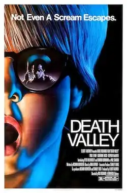Death Valley is a 1982 American slasher film[4][5] directed by Dick Richards, written by Richard Rothstein, and starring Paul Le Mat, Catherine Hicks, Stephen McHattie, Wilford Brimley, Peter Billingsley, and Edward Herrmann. Its plot focuses on a young boy who accompanies his mother and her new boyfriend on a road trip through the Death Valley National Park, where they are unwittingly targeted by a serial killer.