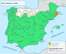 In 138 BC Decimus Junius Brutus founded the Roman colony of "Valentia Edetanorum" (today's Valencia) in Hispania Citerior. Valentia, which means valour, was named in honour of the valour of the Roman soldiers. Edetanorum indicated that the city was in the territory of the Edetani, an Iberian people. It was built on the site of an Iberian town. Livy said that Valentia was founded to give land to soldiers who had fought under Viriathus, the Lusitanian leader.[10]