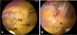 - ^ a b Martin HD, Shears SA, Johnson JC, Smathers AM, Palmer IJ (February 2011). "The endoscopic treatment of sciatic nerve entrapment/deep gluteal syndrome". Arthroscopy. 27 (2): 172–81. doi:10.1016/j.arthro.2010.07.008. PMID 21071168.