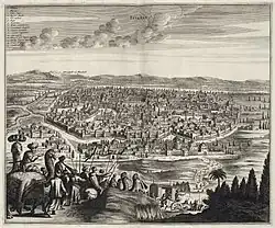 Many European travellers who visited eastern towns, noted that unlike European cities, they were often unwalled—a feature also encountered in Safavid Iran.[5] However, a number of Iranian towns were already walled prior to the rise of the Safavid dynasty, with some cities undergoing little or no change in over 200 years of rule by the Safavids.[5] Cities in Safavid Iran that fit this category are Derbent in the north, as well as Herat and Kandahar in the east.[6] Although extant information on Mashhad's fortifications is limited, its high and strong walls that surrounded the city in the late 17th century may have been constructed in the early 1500s.[7]
