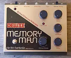 The bucket-brigade devices (BBD) was developed at Philips in 1969. Delay effects utilizing this technology eventually became available. Notable examples include the Memory Man from Electro-Harmonix, released in 1976 and the Boss DM-2 released in 1981. BBD-based devices offered a convenient alternative to tape delays and leslie speakers but were eventually largely supplanted by digital delays.[25]