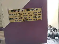 ![]() Delhi–Ambala Cantonment Intercity Express board | |