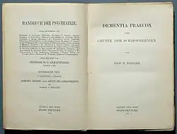 In this edition dementia praecox is still essentially hebephrenia, and it, dementia paranoides and catatonia are described as distinct psychotic disorders among the "metabolic disorders leading to dementia".[34]